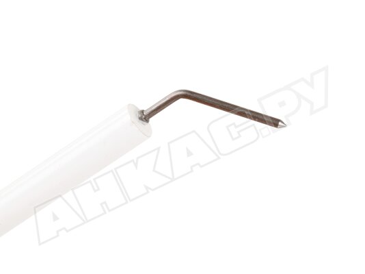 Электрод поджига 122,2 мм, артикул: 2080259 используется для образования искры и воспламенения топлива при запуске горелки. Металлическая часть защищена фиксированной изоляцией Ø11 X 80 мм для безопасной эксплуатации теплогенерирующей установки. На электрод подается напряжение от повышающего трансформатора через кабель поджига, присоединяемый с помощью штекера Ø4 мм.