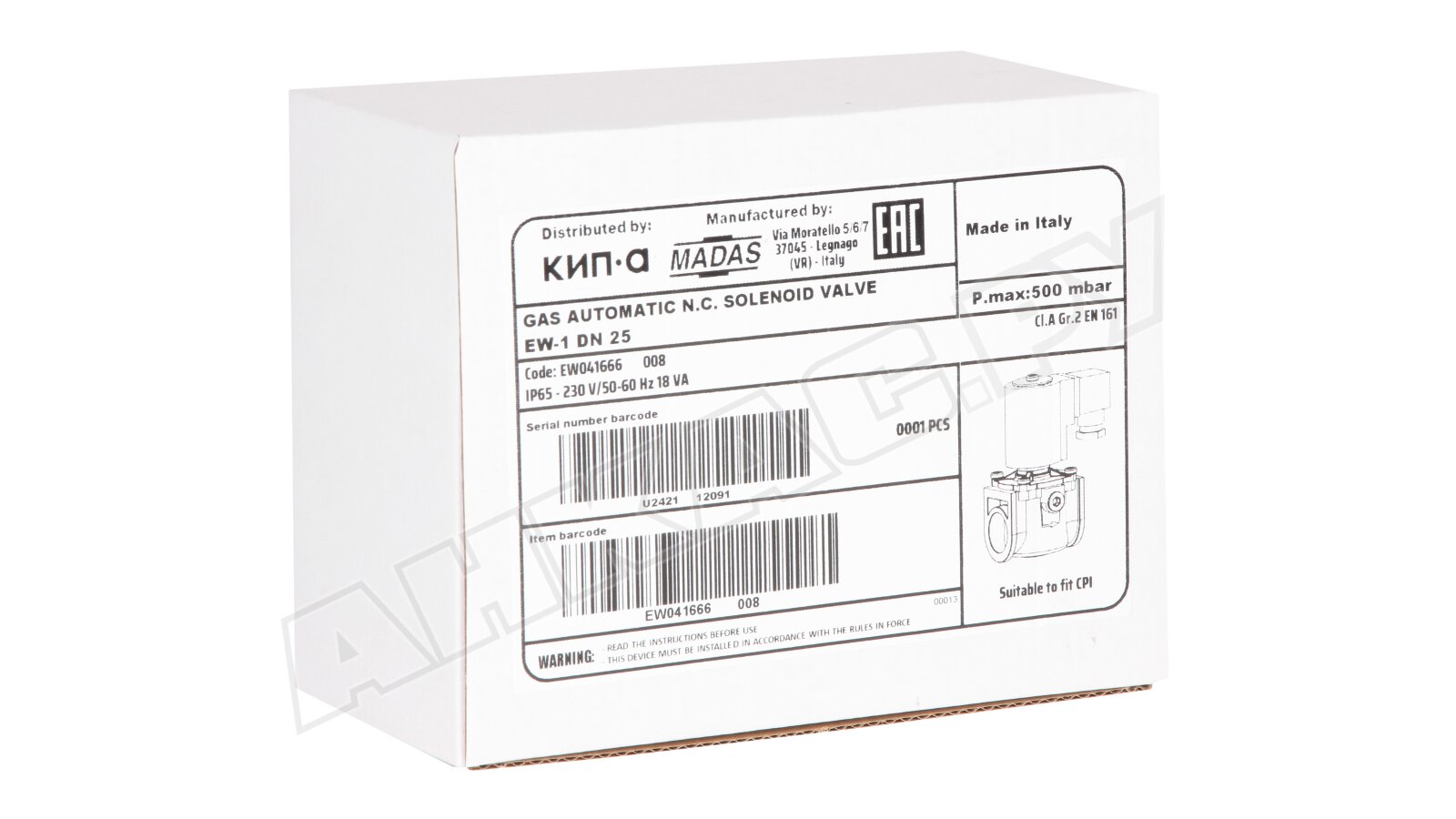 Газовый электромагнитный клапан Madas EW-1 DN 25 500 мбар