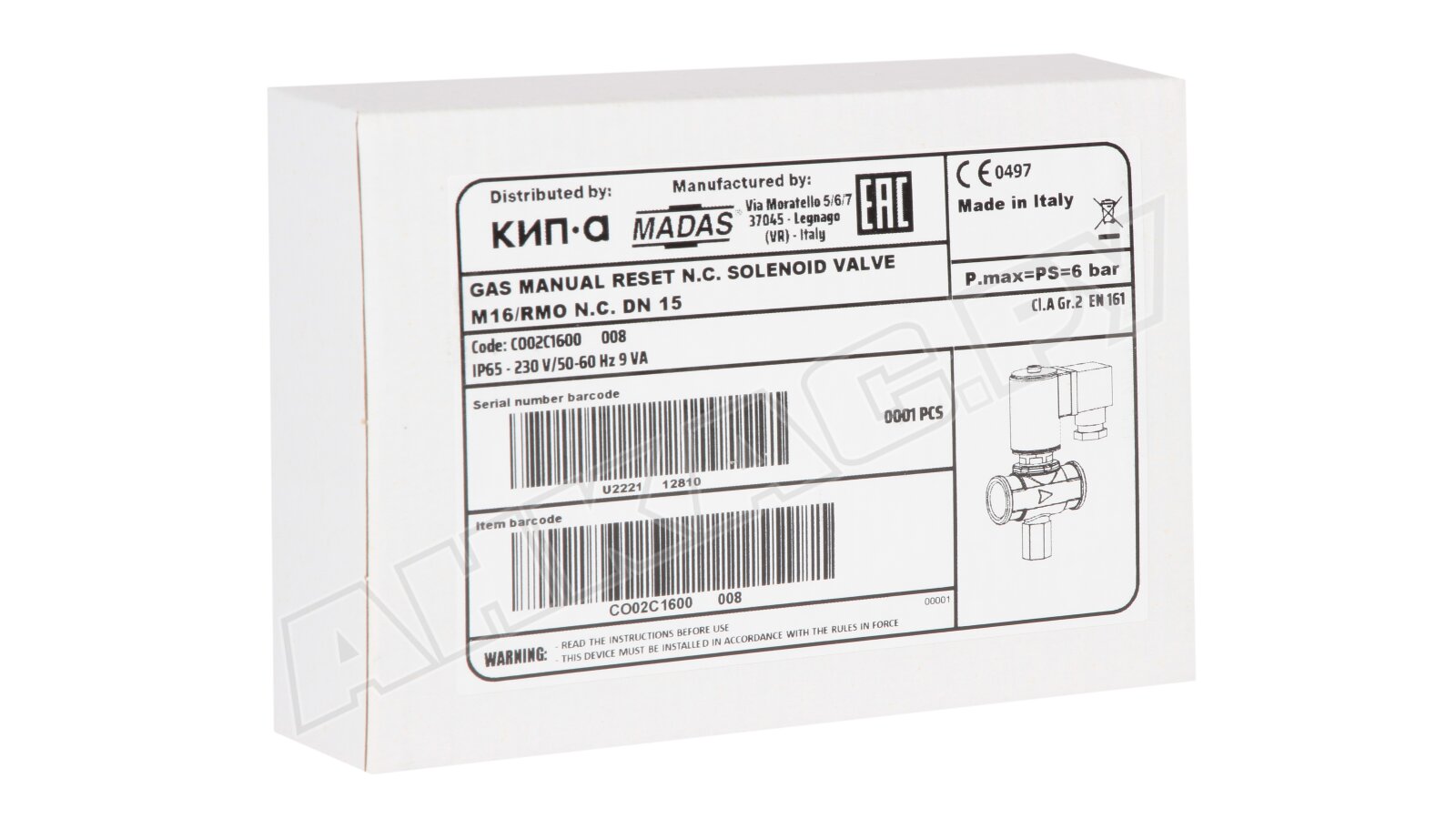 Газовый электромагнитный клапан Madas M16/RMO NC DN15, 6 бар