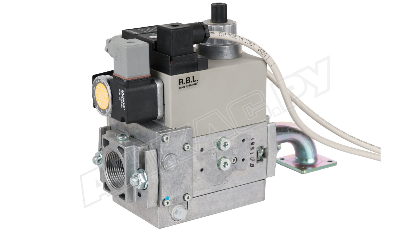 Компактная газовая рампа оснащена литым алюминиевым корпусом. На входе потока размещен датчик-реле, контролирующий минимальное давление газа и сетчатый фильтр тонкой очистки для удаления механических частиц. В состав мультиблока входят два быстродействующих электромагнитных клапана класса А по EN 161, регулятор давления. Настройка выходных параметров осуществляется при подключении горелки к котлу. Заданный уровень давления поддерживается автоматически. Опционально можно установить блок контроля герметичности газовых клапанов.