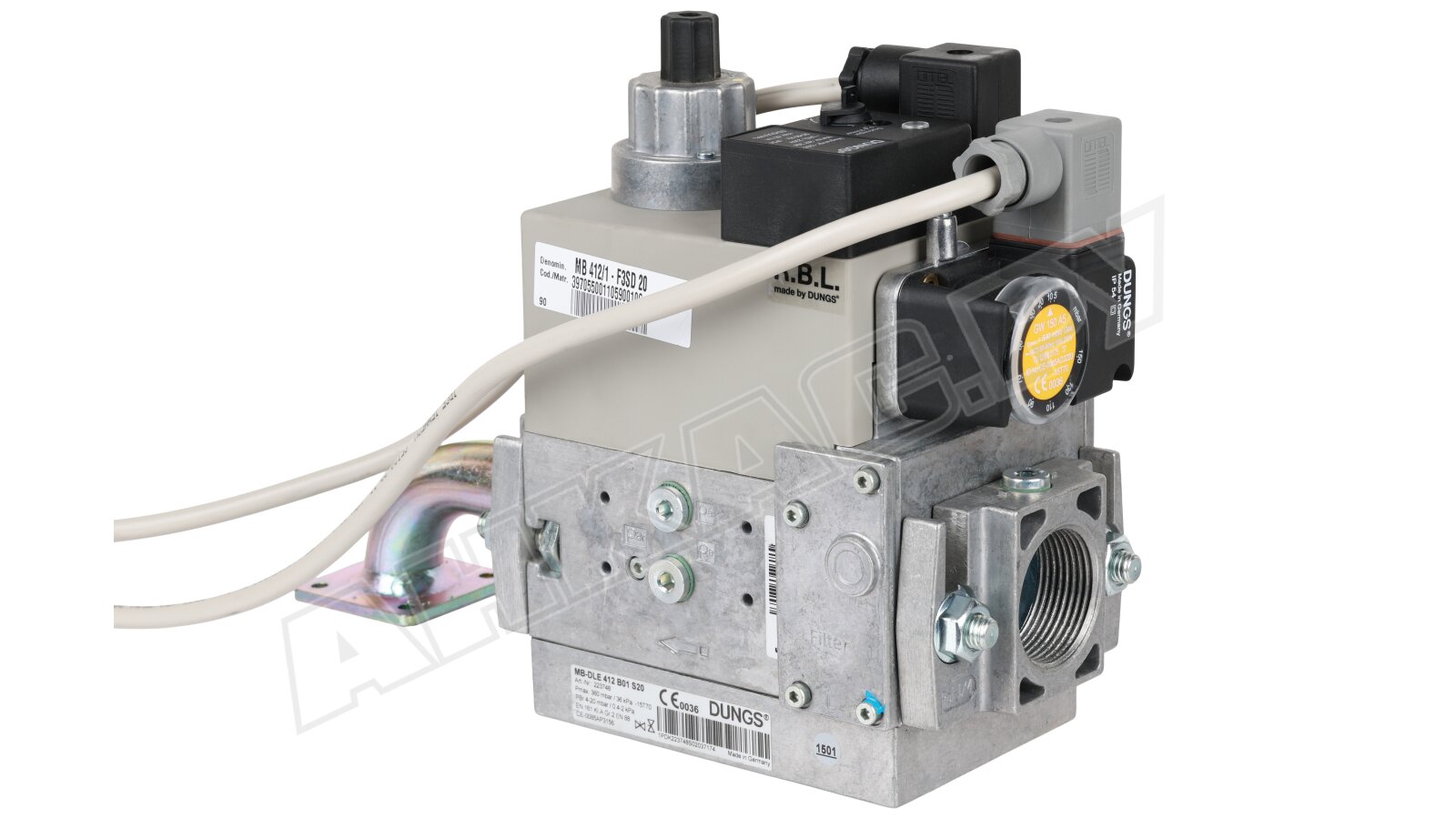 Газовая рампа Riello MB 412/1 - F3SD 20, арт: 3970550 – компактная арматура со встроенным фильтром, регулятором, автоматическими запорными клапанами и реле давления. Поддерживает стабильные параметры давления газа на выходе в широком диапазоне входных давлений. Мгновенно и герметично перекрывает поток при неполадках или возникновении необходимости. Рабочей средой является газ семейства 1-3 и другие нейтральные газы.
