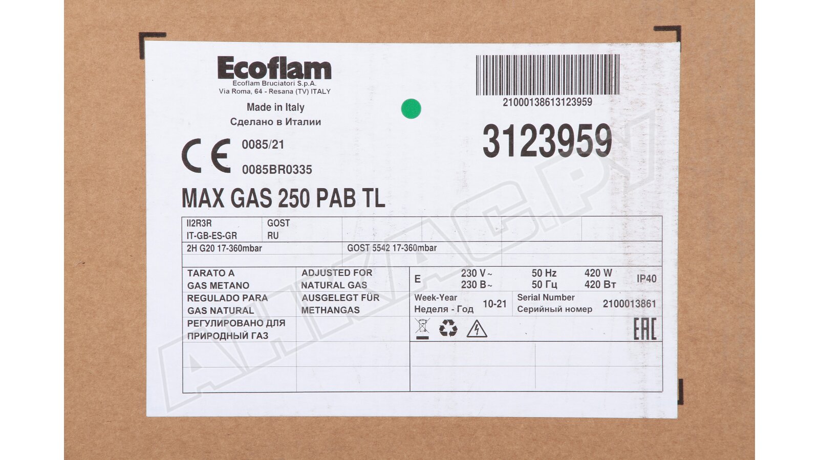 3. Газовая горелка Ecoflam MAX GAS 250 PAB TL