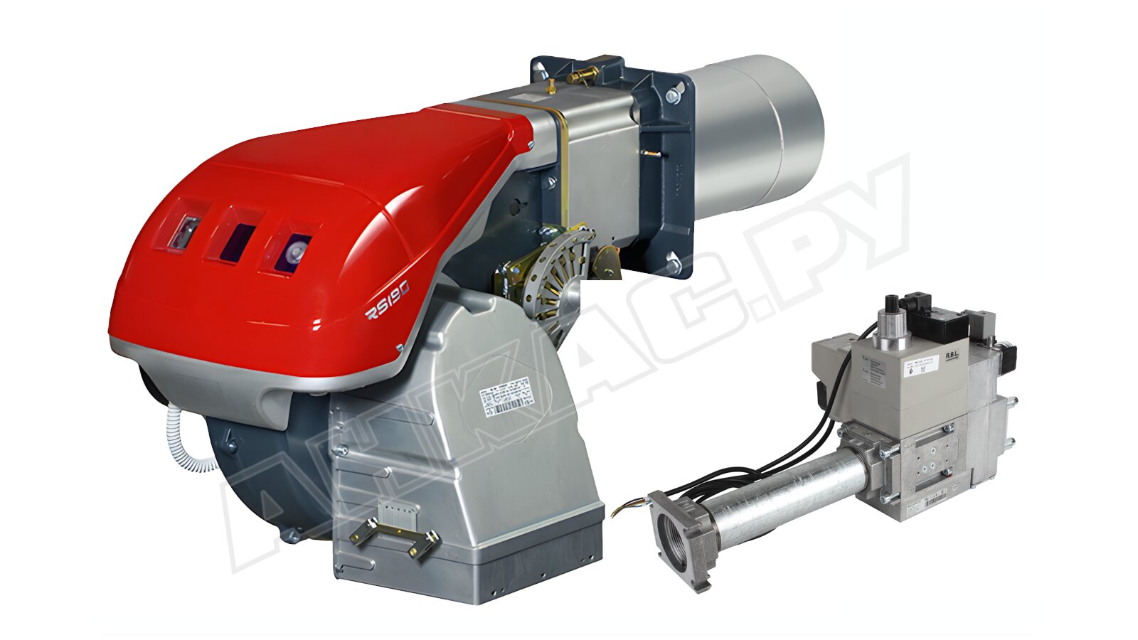 Газовая горелка Riello RS 190/M TC FS1 с газовой рампой Riello MB 420/1 CT RT 30, артикул 3970182. Газовая рампа с блоком контроля герметичности.