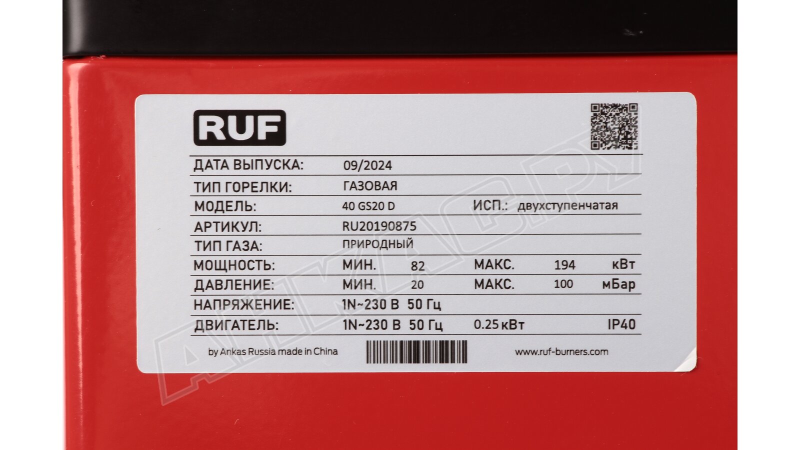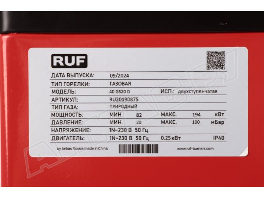 - Газовая горелка RUF 40 GS20D TC MB-DLE 407