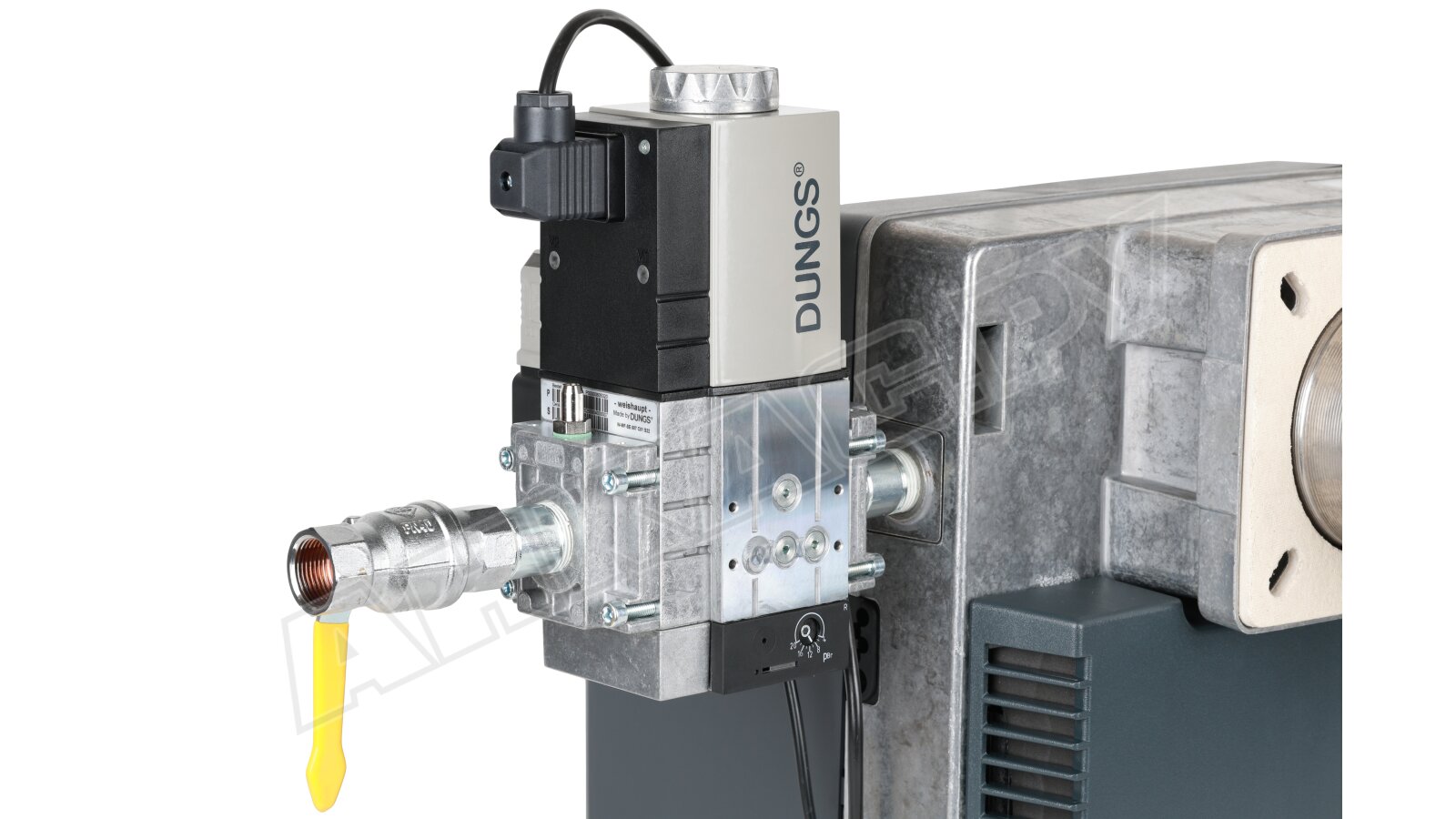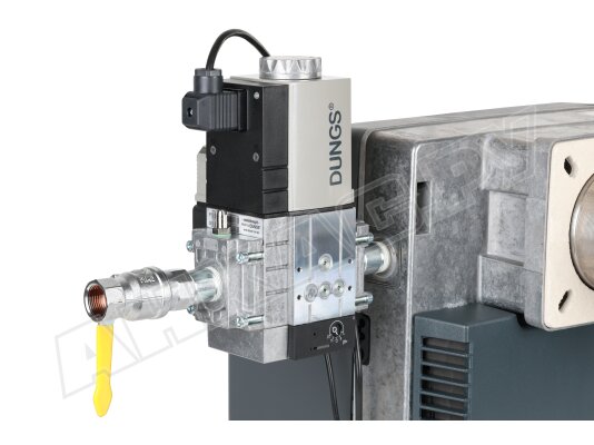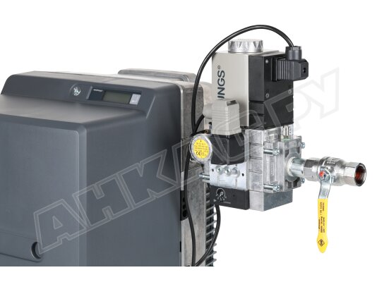 - Горелка поставляется в комплектации мультиблоком, который выполняет функции выравнивания давления газа, фильтрации потока, управления подачей/ блокировкой газопровода с помощью электромагнитных клапанов, контроля давления газа, проверки герметичности запорной арматуры.