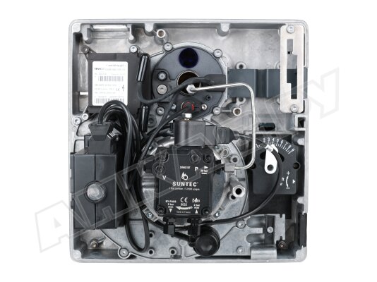 - Топливо равномерно распыляется механическим способом с помощью форсунки, которая подбирается индивидуально. В форсуночном узле размещен быстродействующий э/м клапан, повышающий безопасность эксплуатации системы сжигания.