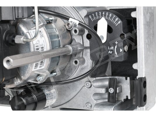- Воздух в камеру сгорания нагнетает вентилятор с экономичным двигателем. Воздушный поток способен преодолевать сопротивление топки -0,2...0,5 мбар.