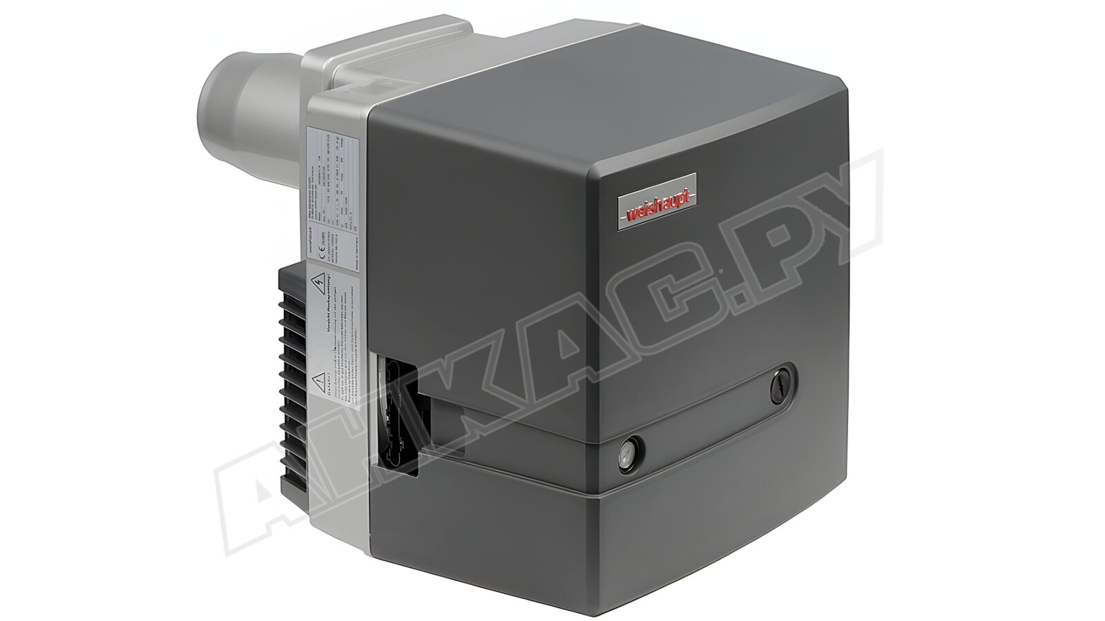 Одноступенчатая газовая горелка Weishaupt WG20F/1-C, в исполнении LN, без термозатвора и без сервопривода. Присоединение газовой арматуры Rp 3/4". В качестве топлива используется только сжиженный газ.