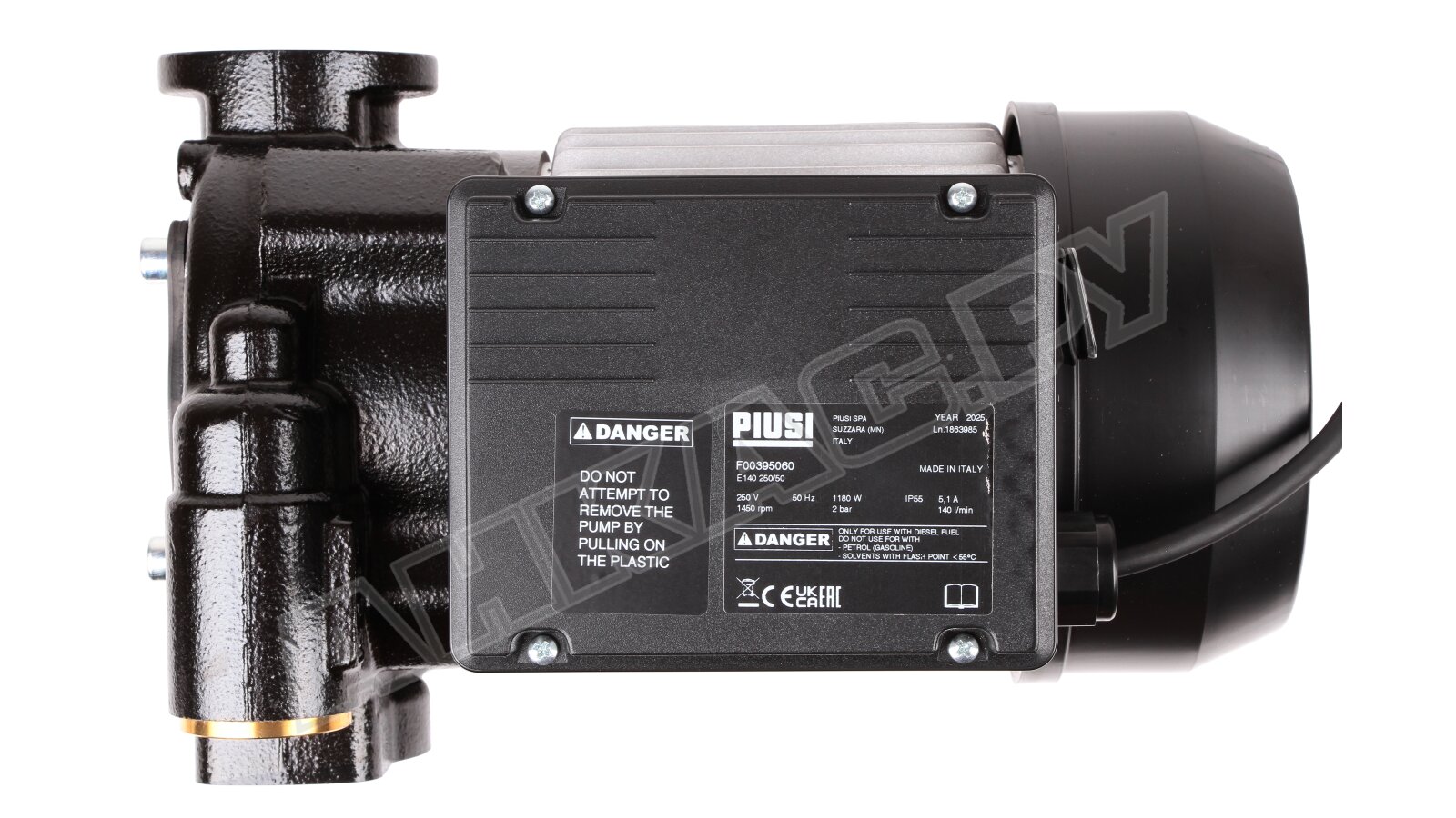 Насос для топлива Piusi E 140 250В, арт: F00395060 за счет системы охлаждения двигателя работает в непрерывном режиме. Перекачивает дизельное топливо со скоростью до 140 л/мин. Усиленная конструкция с чугунным корпусом и надежными уплотнениями подходит для промышленных условий эксплуатации и минусовых температур окружающей среды.
