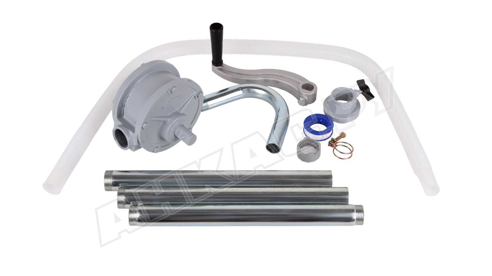 В комплектацию входит телескопическая всасывающая трубка. Раздвижная конструкция расширяет сферу применения насоса – он может устанавливаться на бочки разной вместимости, вплоть до 205 литров. Для монтажа на емкость предусмотрен универсальный адаптер.