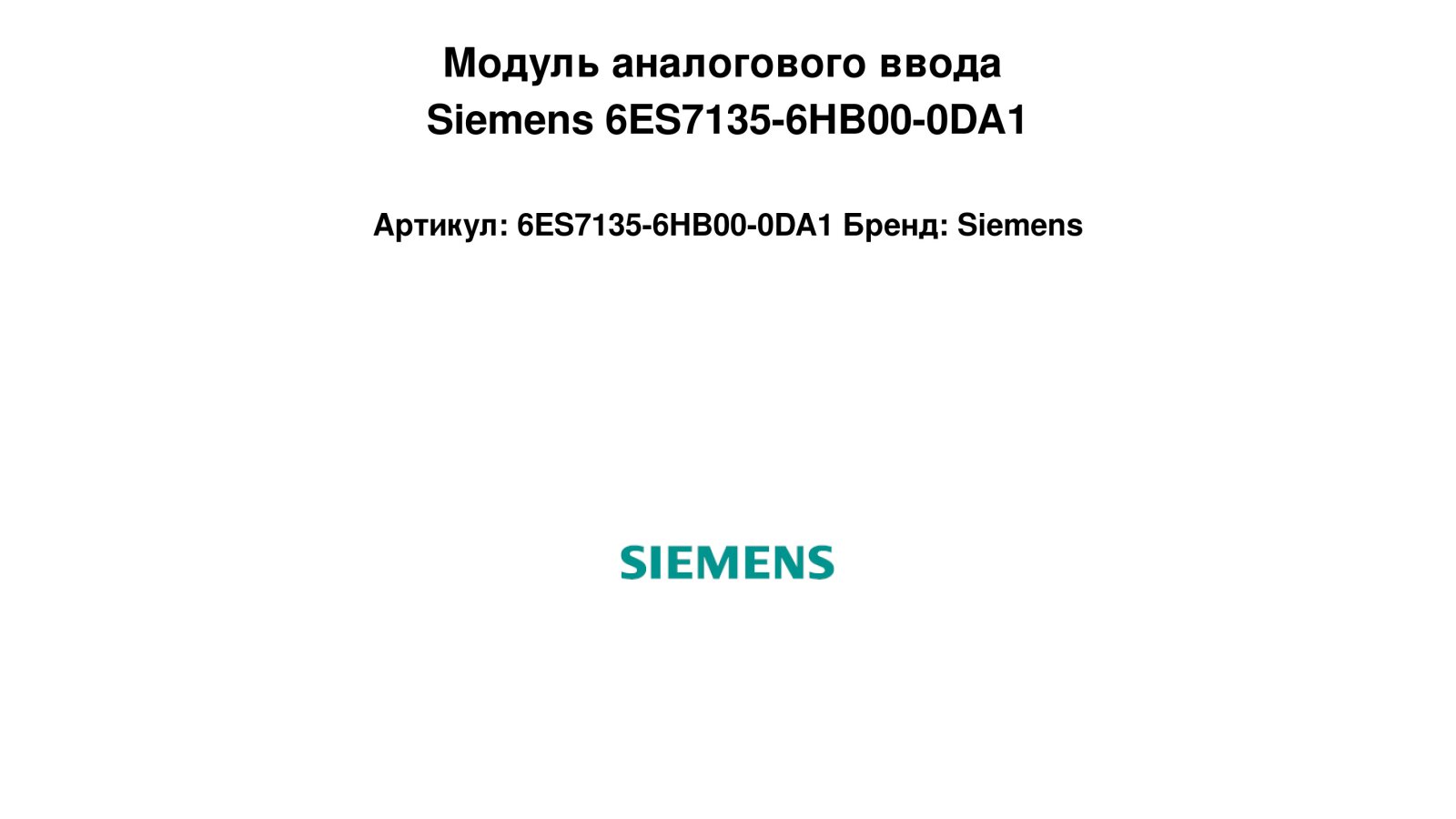 Модуль аналогового ввода Siemens 6ES7135-6HB00-0DA1