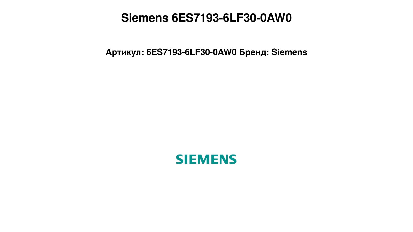 артикул: 6ES7193-6LF30-0AW0