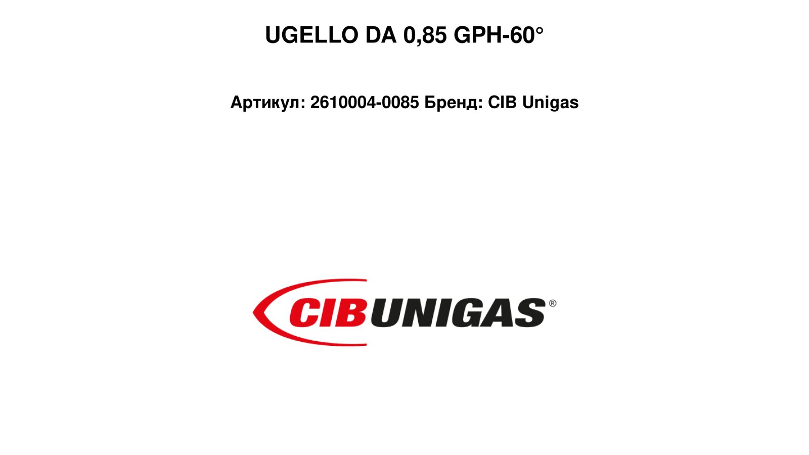 - Форсунка CIB Unigas 0.85/60° GPH, 2610004-0085