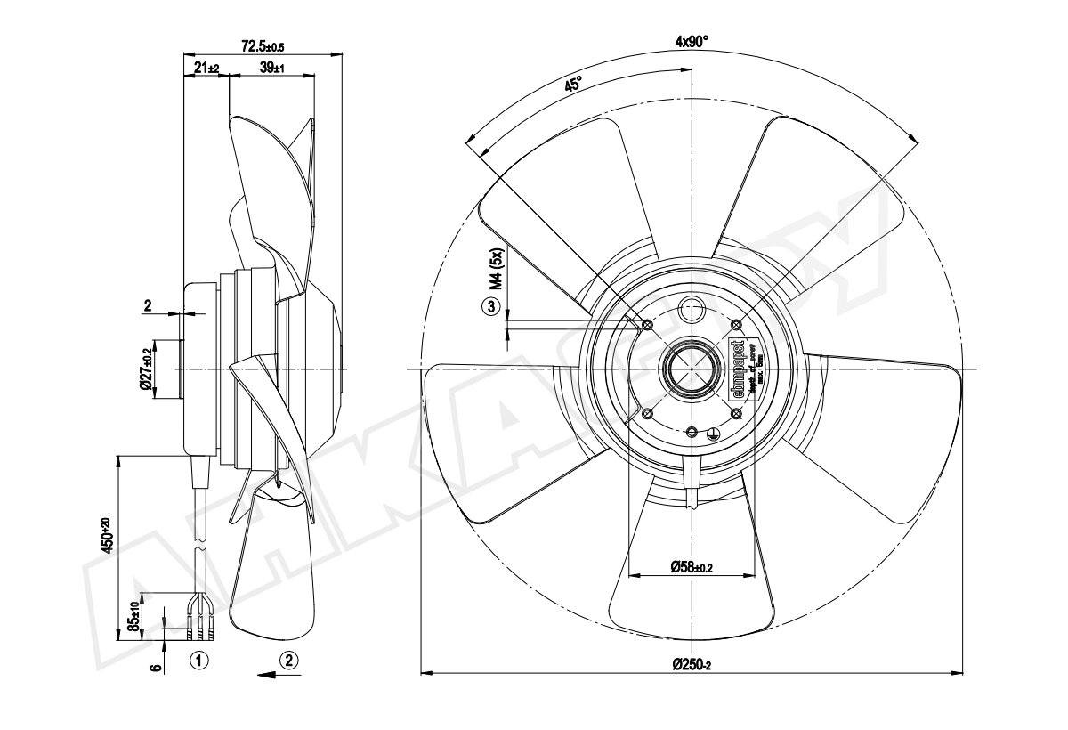- Вентилятор осевой промышленный Ebmpapst A4S250AA0201