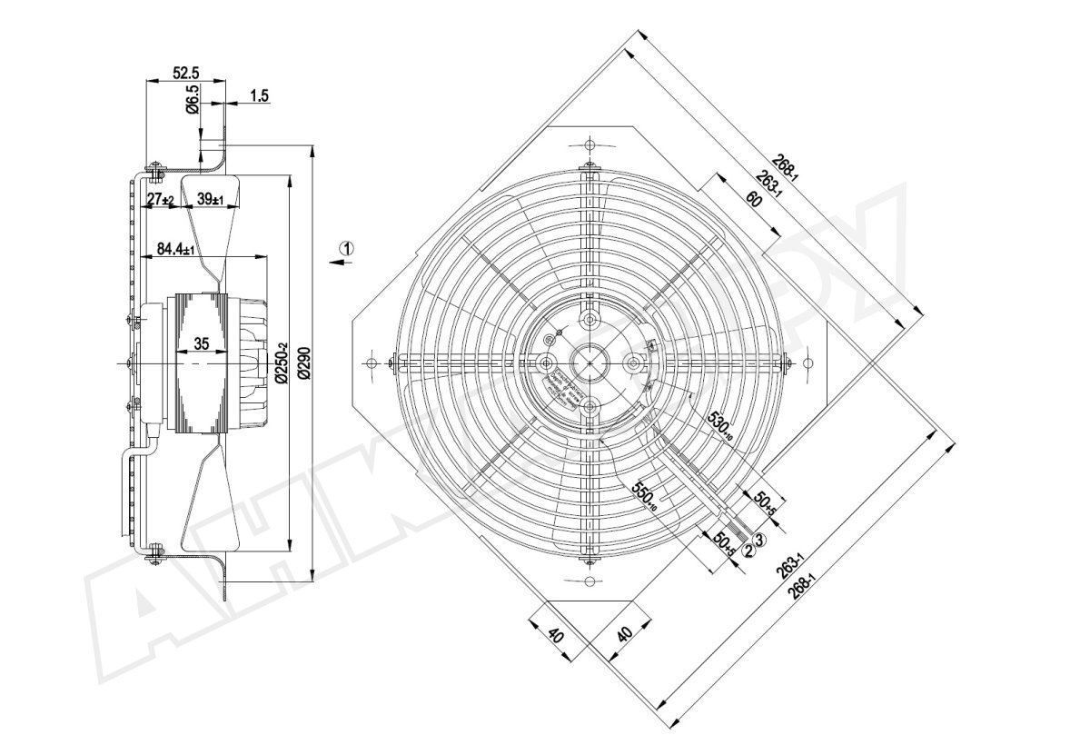 3. Вентилятор осевой промышленный Ebmpapst W2D250GA0409