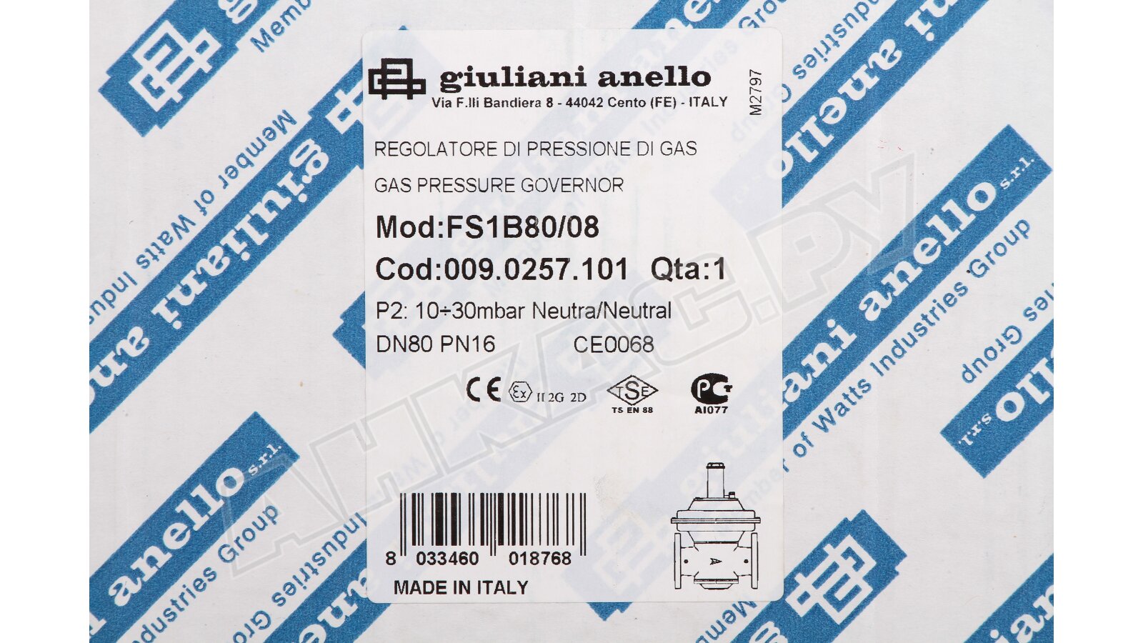 Регулятор давления газа Giuliani Anello FS1B80/08
