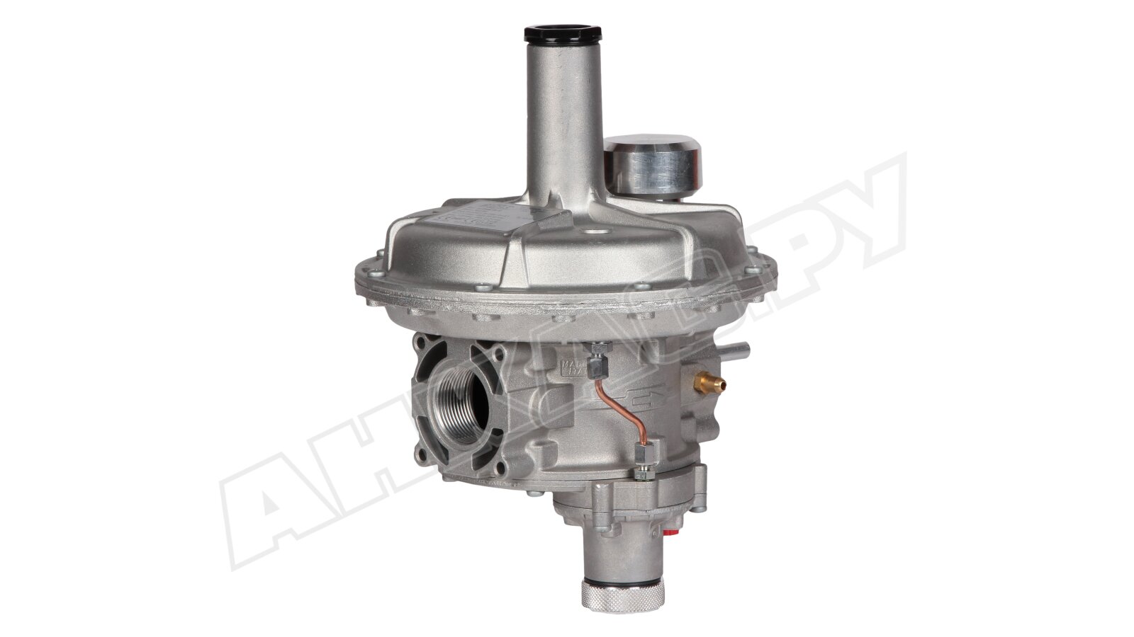 Возможно размещение на горизонтальный и вертикальный трубопровод (преимущественно вверх пружиной). При других вариантах монтажа (пружина сбоку) сокращается срок службы регулятора.